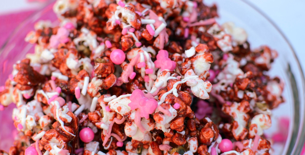 Barbie popcorn is a very tasty snack and is covered with magenta raspberry caramel. The colorful corn is then topped with flamingo pink and white candy melts for even more pink protrusion. If that wasn't enough I added a custom Perfectly Pink Sprinkle Mix with even more Barbie behavior. I loved how the popcorn came out when I finished. It's definitely thee snack for Barbie, myself and everyone else to enjoy.